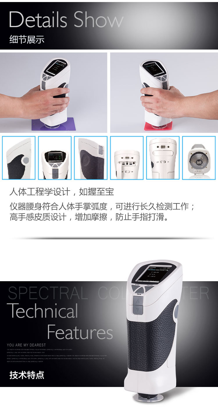 儀器腰身符合人體手掌弧度,可進行長久檢測工作;高手感皮質設計,增加摩擦,防止手指打滑。