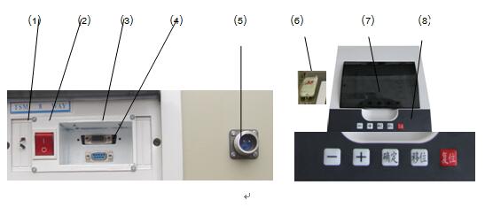 ⑵ 電源開關: 接通電源后,按下此開關儀器開始工作。