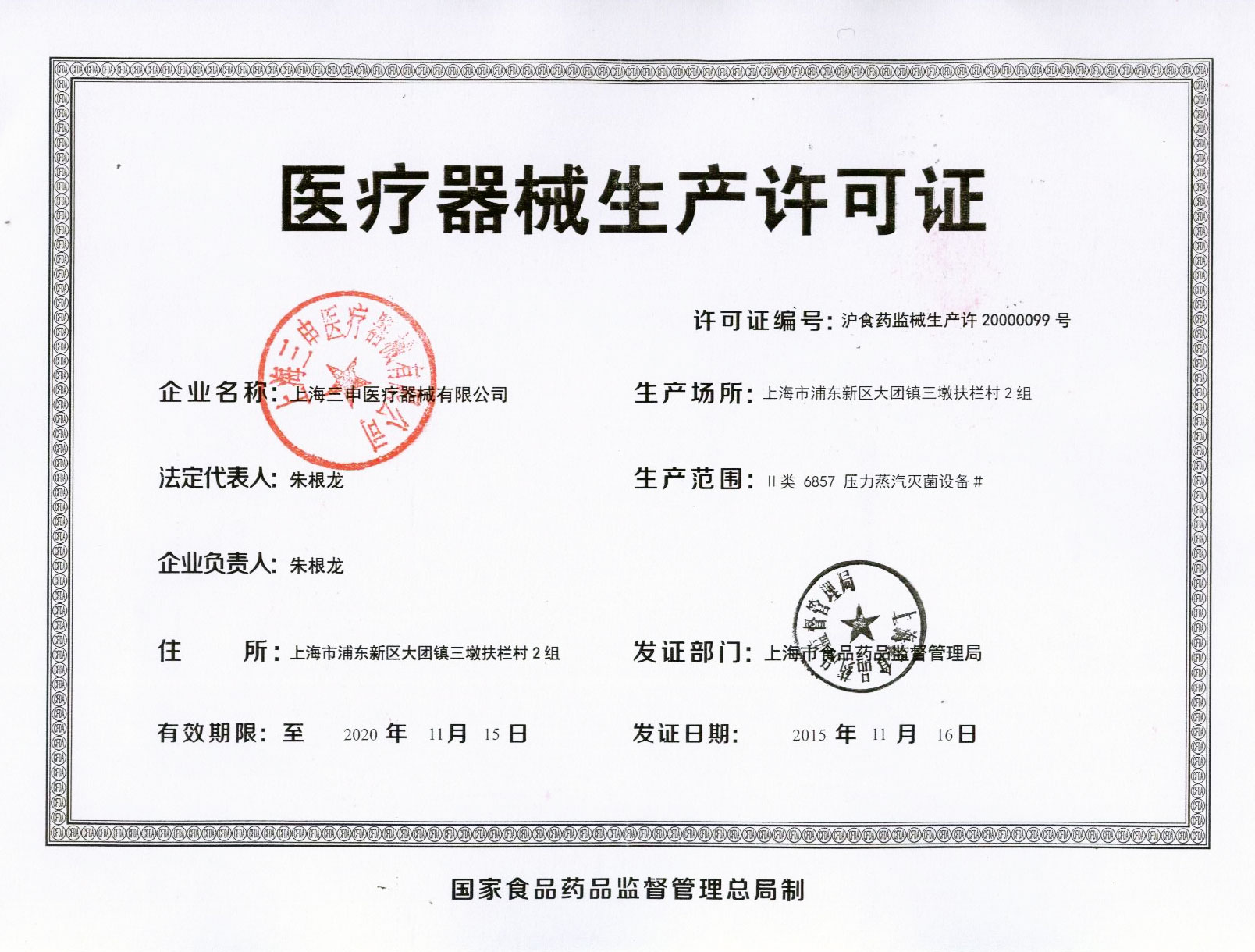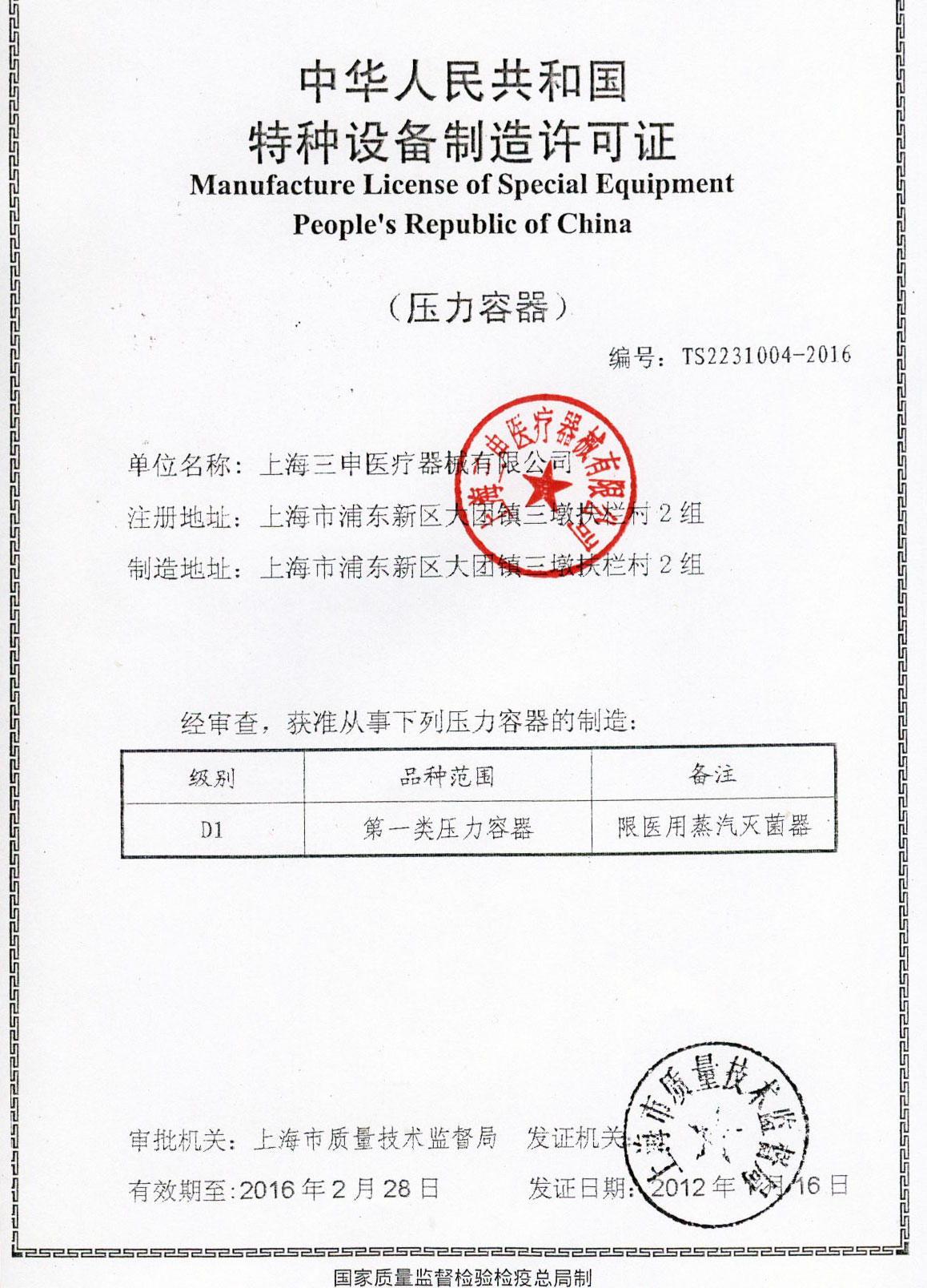 - 具備醫療器械注冊證、特種設備制造資格證(壓力容器)
