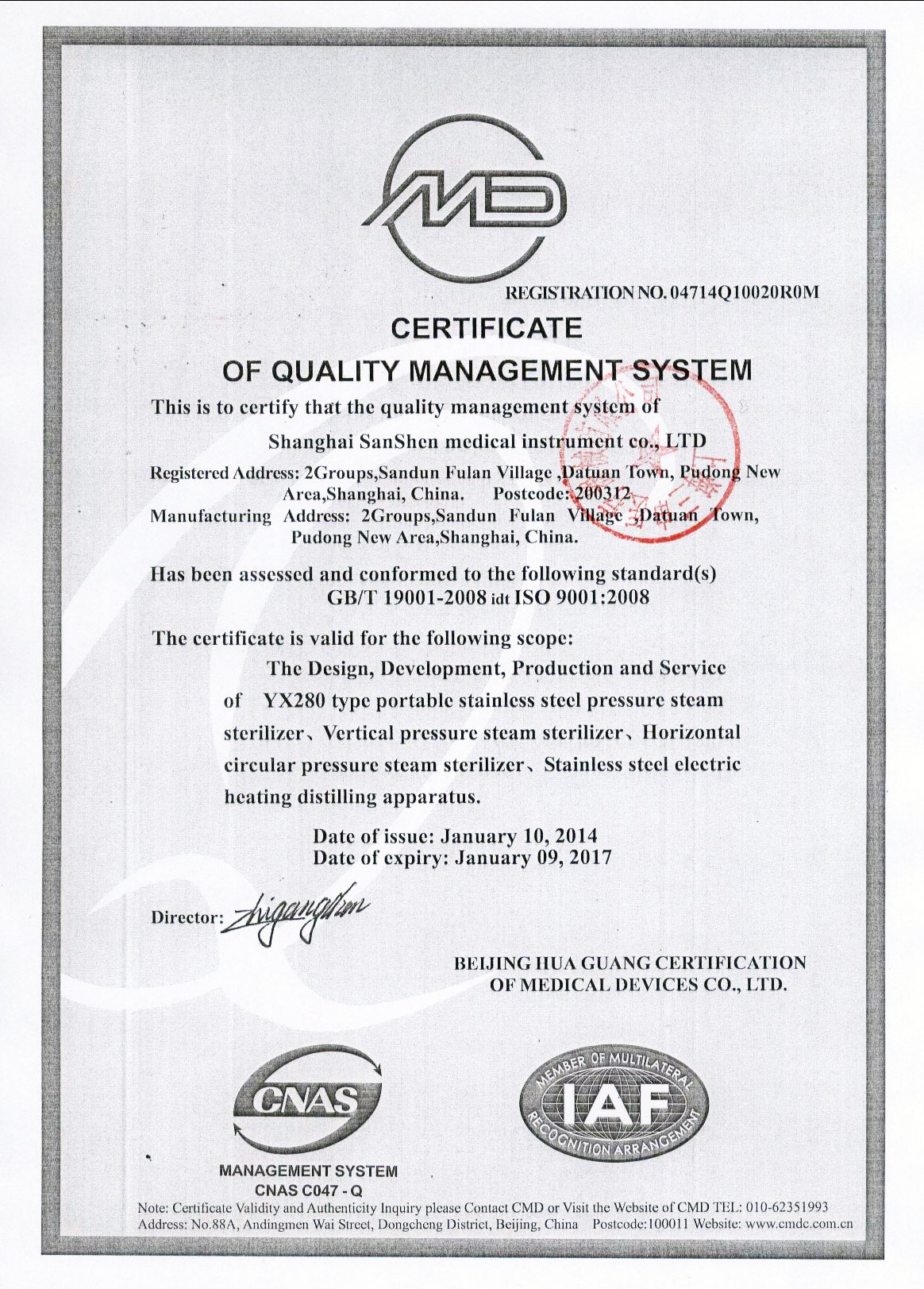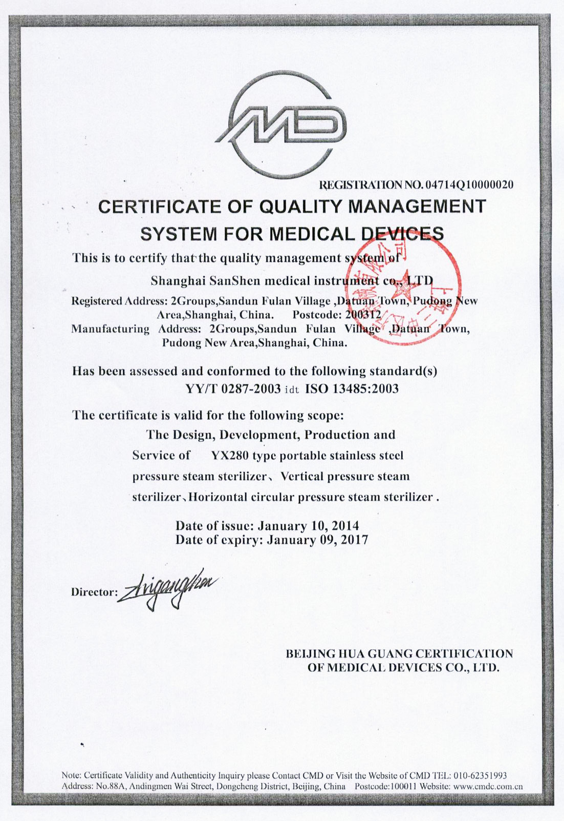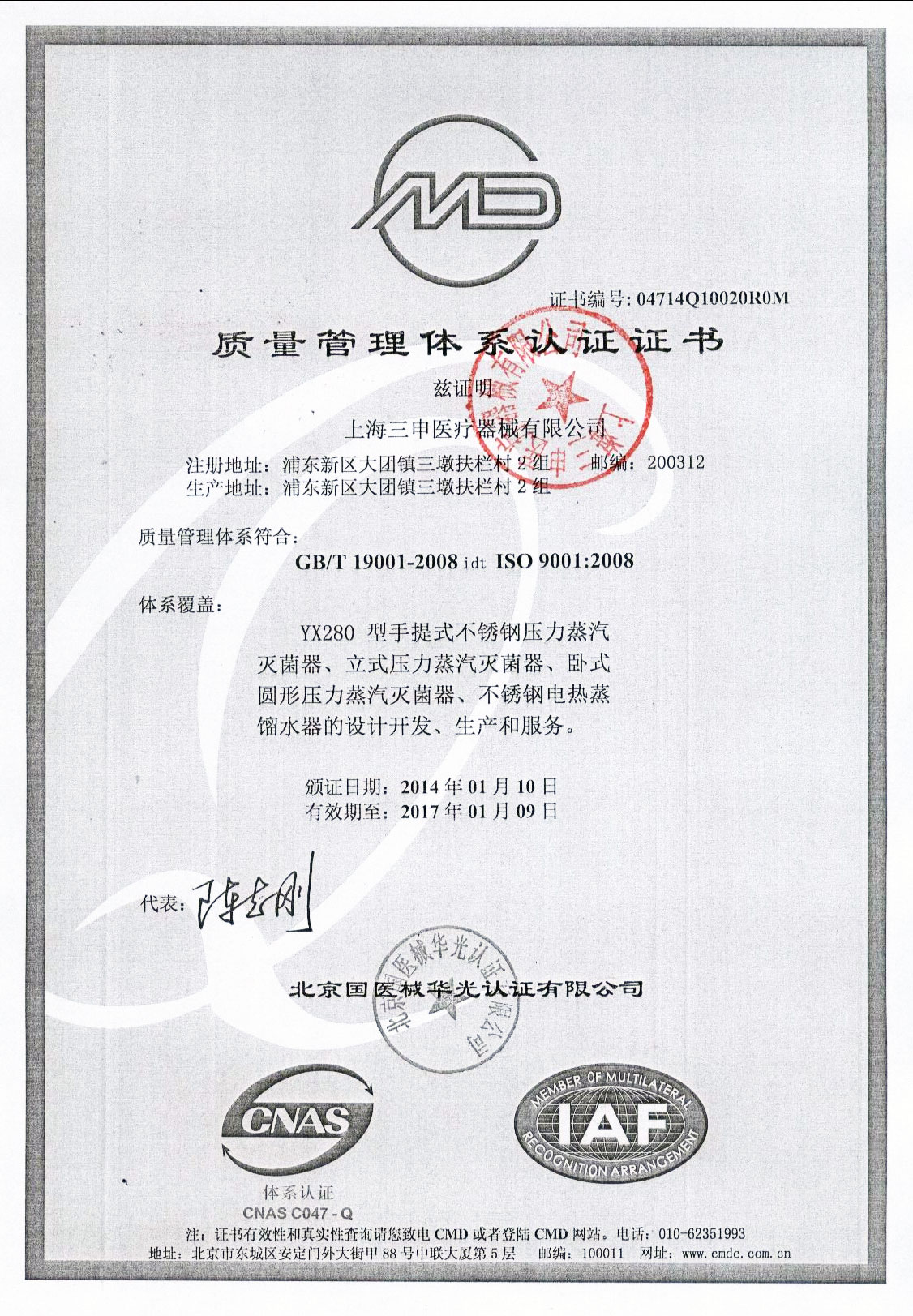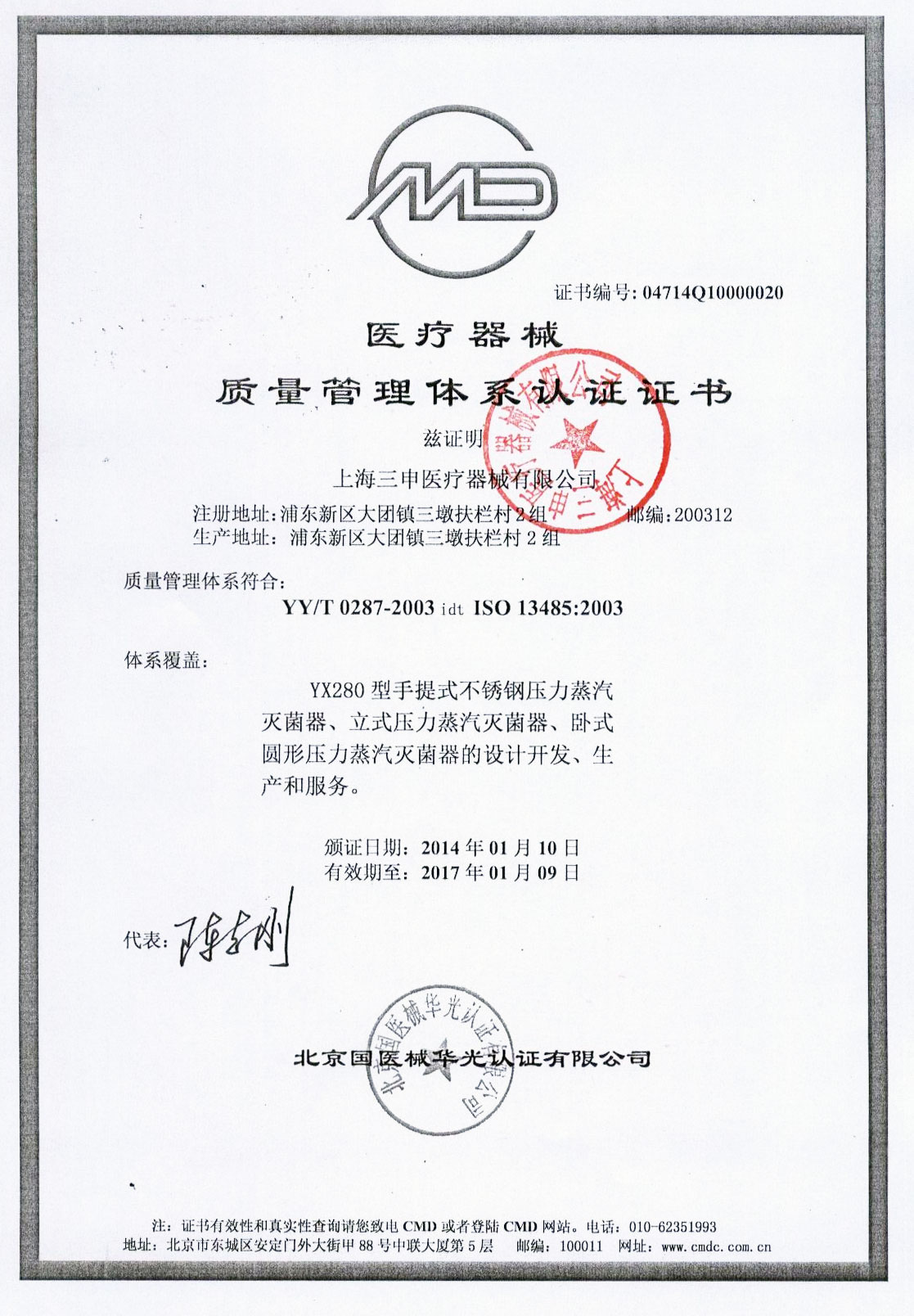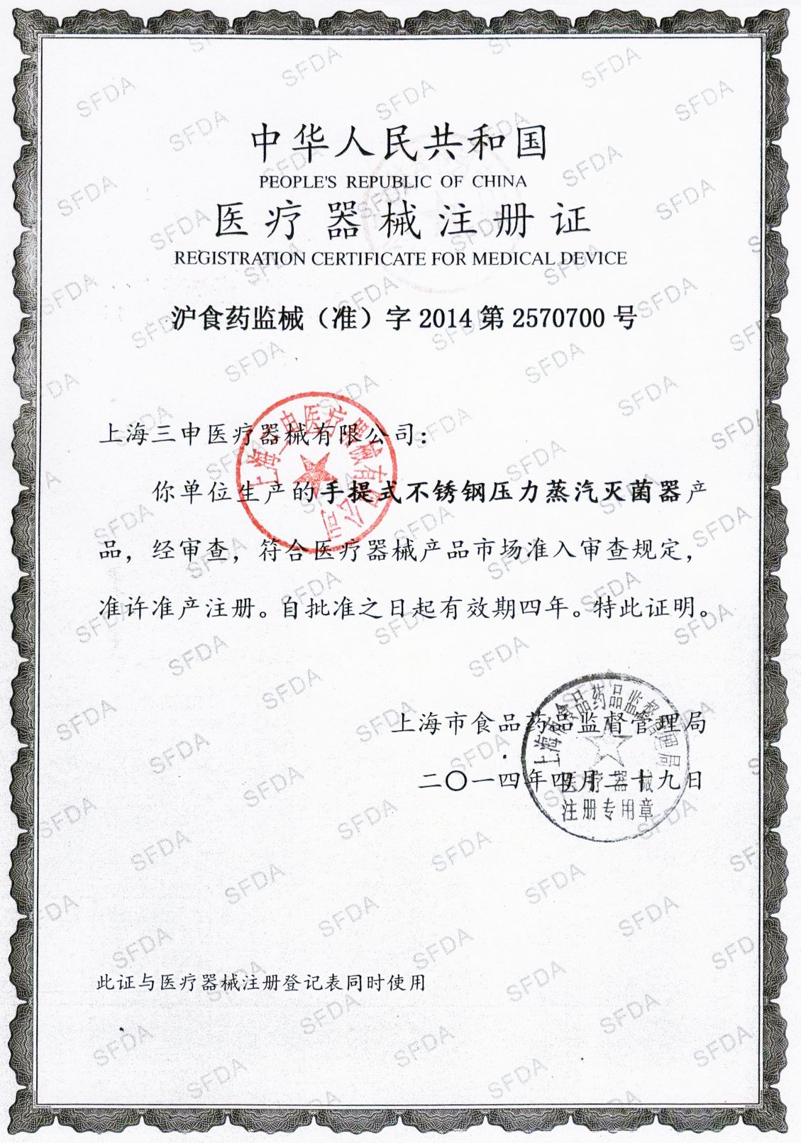 - 有醫療器械產品注冊證和特種設備制造許可證(壓力容器)