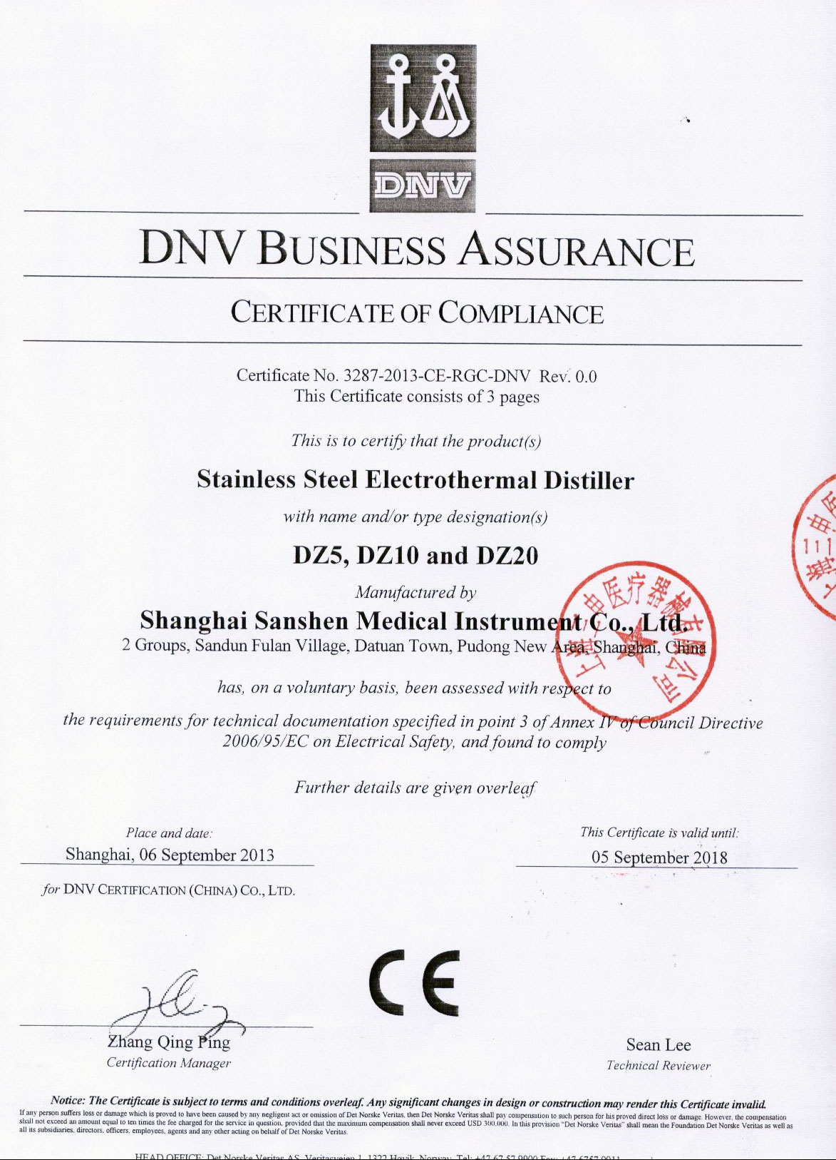 上海三申DZ5C/DZ10C/DZ20C雙重蒸餾水器