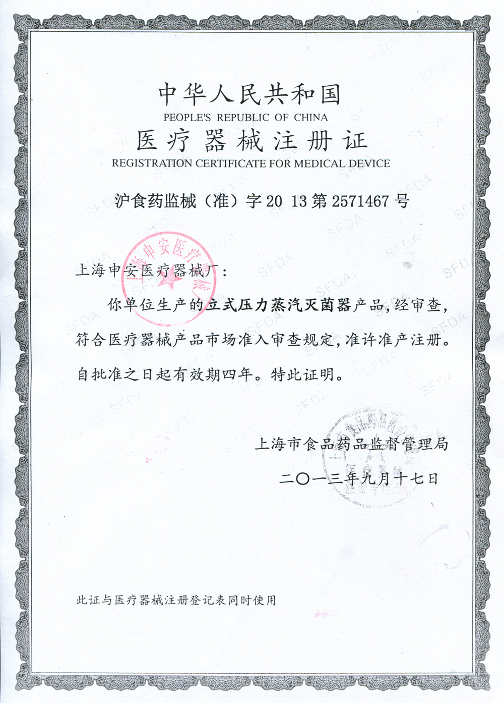 滬食藥監械(準)字2013第2571467號